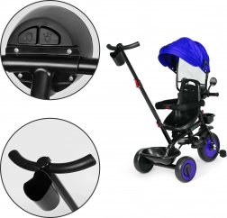 Sistem 3v1 omogoča postopno odstranjevanje strehice, ograj in starševskega ročaja – od načina »tricikel z vodenjem« do samostojnega tradicionalnega tricikla. Praktična oprema vključuje interaktivno lučko s 4 melodijami in barvno osvetlitvijo, držalo za pijačo in 2 odlagalna košarica za vse potrebno na sprehodu.