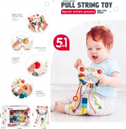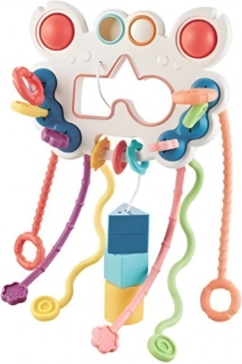Razvija fino motoriko in podpira logično mišljenje skozi interaktivno igro. Pisane barve in raznolike teksture pritegnejo pozornost, kar pomaga razvijati vizualne sposobnosti. Igrača je izdelana iz varnih, nestrupenih materialov, kar zagotavlja, da je primerna za otroke vseh starosti.