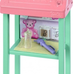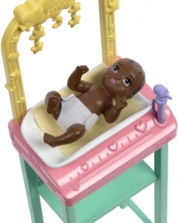 Set vključuje previjalno mizo in zdravniška orodja, ki omogočajo realistično igralno izkušnjo in vadbo negovalnih spretnosti.