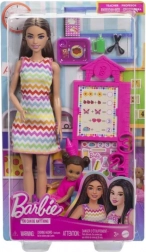 Set vsebuje punčko Barbie, oblečeno v pisano obleko s cikcak vzorcem, ki poudarja njeno ustvarjalnost. Z vključenimi dodatki, kot sta učiteljsko stojalo s številkami in tabla, se lahko otroci popolnoma vživijo v vlogo učiteljice.