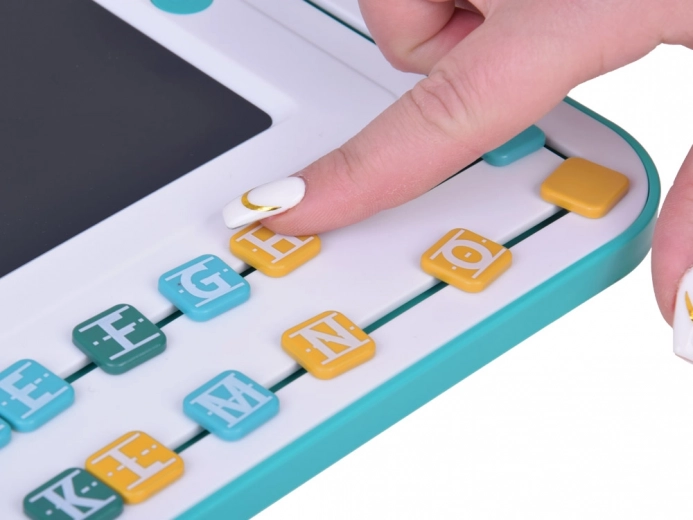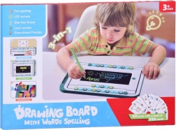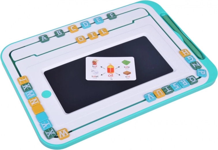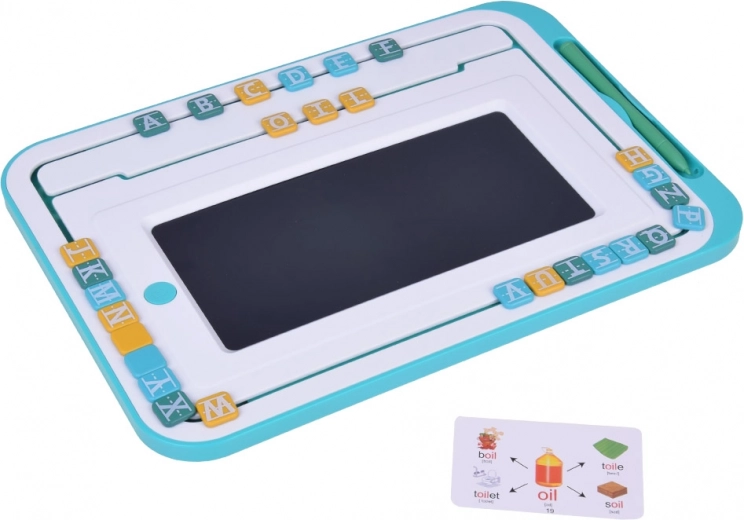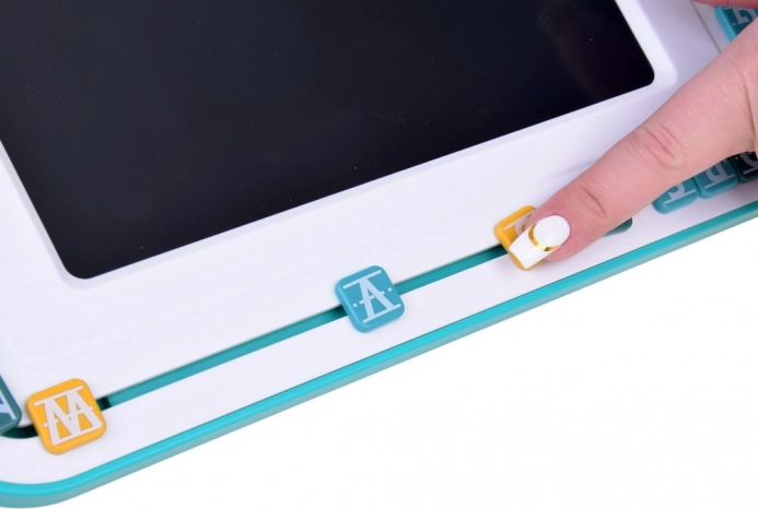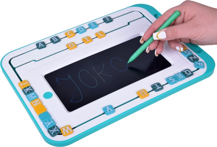 Glavni element kompleta je tablica z LCD zaslonom in pisalom, ki otrokom omogoča preprosto pisanje in risanje. Okoli zaslona se nahajajo premične barvne črke, ki jih je mogoče premikati in sestavljati v besede. Tablica je opremljena s okroglim gumbom »koš«, ki izbriše vsebino na zaslonu, ter s črnim drsnikom za preprečevanje nenamernega brisanja.