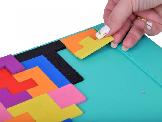 Tetris v obliki pisanih lesenih kock