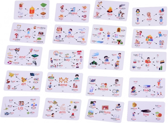 229 besed, ki pokrivajo širok nabor tem. Vsaka kartica pomaga pri širitvi besednega zaklada in fonetičnem učenju.