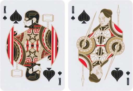 Komplet Avengers: Infinity Saga prinaša povsem avtorski dizajn v vsakem detajlu – od asov, preko jokerjev do škatlice, navdihnjene z ikoničnimi liki MCU. V notranjosti najdete reference na Doctorja Strangea, Visiona, Winter Soldierja in Gamoro, medtem ko se Loki in Thanos pojavita na jokerjih. Izdelano v ZDA za vrhunski občutek pri igri in v zbirki.