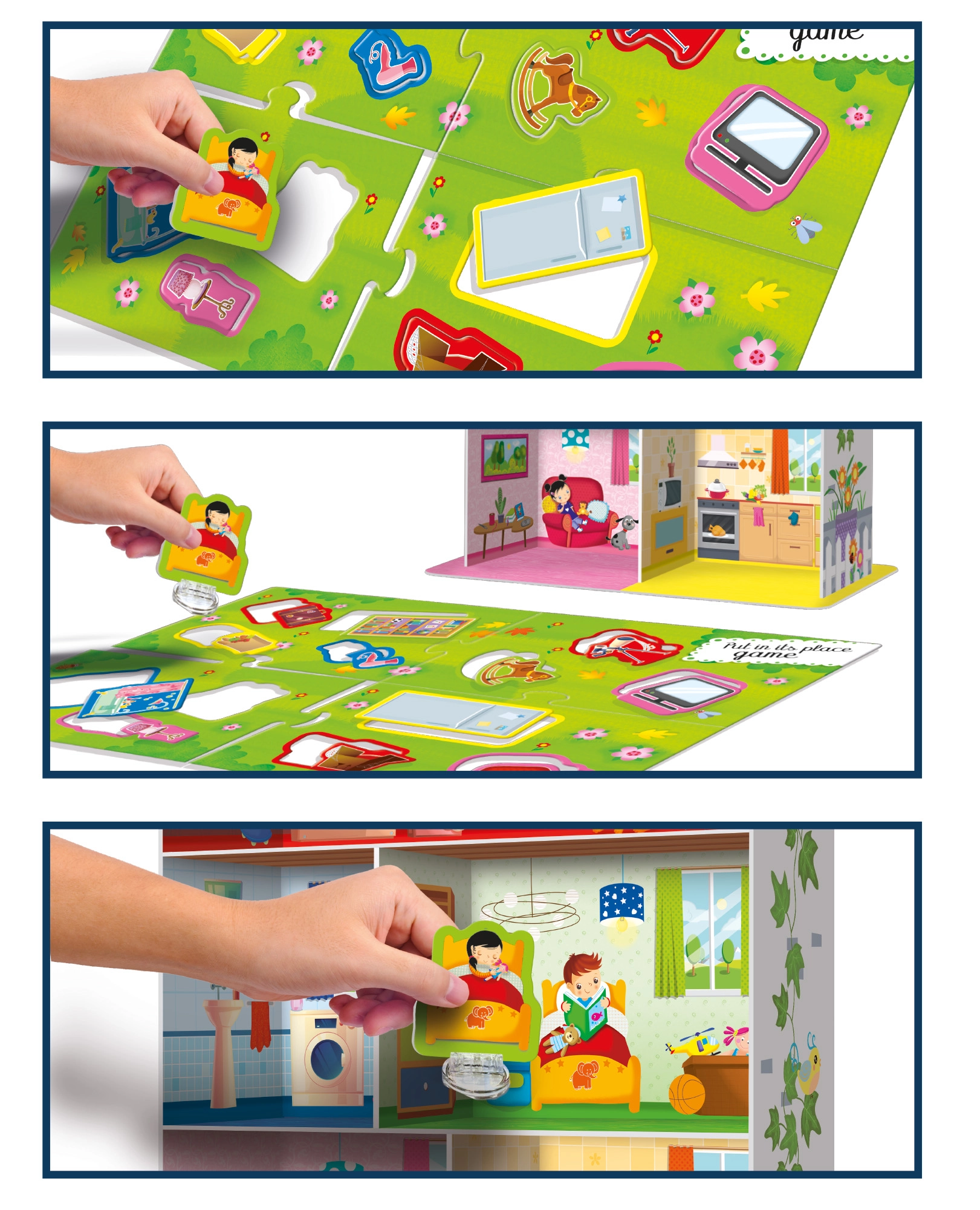Odkrijte zabavno izobraževalno igro za najmlajše: Montessori igra Moj dom razvija fino motoriko, logiko in domišljijo. Otroci si sestavijo svojo hišico in razporedijo opremo kot sestavljanko. Spodbuja samostojnost, prostorsko zaznavanje in kreativno igro.