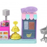 Ta podrobno izdelan mini supermarket ponuja otrokom številne igralne scenarije: od polnjenja polic z živili, preko upravljanja blagajne s plačilnim terminalom, do pospravljanja izdelkov v hladilnik z vratci ter pregledne predstavitve na vrtljivem stojalu. Del seta je tudi nakupovalni voziček, velikostno prilagojen mini punčki.