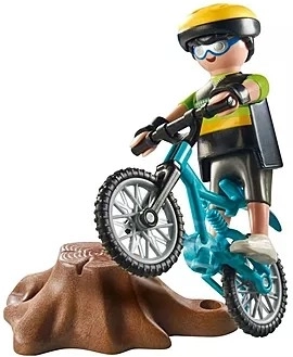 Set PLAYMOBIL Special Plus prinaša akcijskega kolesarja z gorskim kolesom, zaščitno opremo in terenskim elementom za kaskaderske podvige. Otroci lahko uprizarjajo vožnjo po terenu, skoke in dirke ter razvijajo domišljijo.
