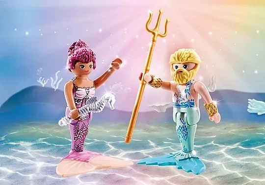 Morska vila in morski mož s trozobom sta idealen par za igranje pravljičnih prizorov iz oceana.