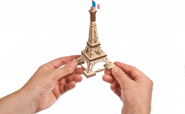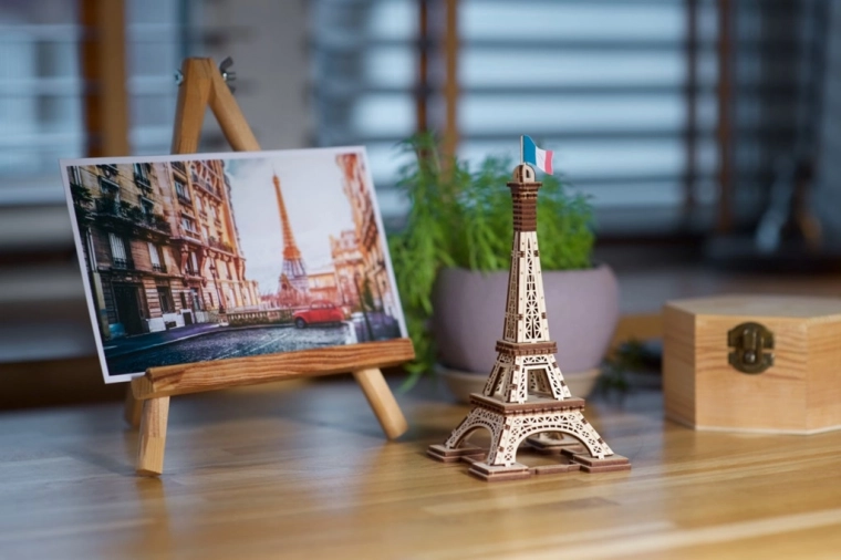 Podrobna mrežasta konstrukcija in majhna zastavica na vrhu dodajata modelu realističen videz in čar Pariza.