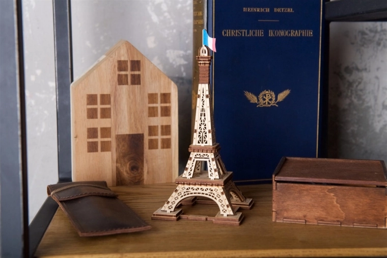 Elegantna lesena replika Eifflovega stolpa izstopa z nežno mrežasto strukturo in avtentičnimi detajli, ki poudarijo vsako polico ali pisalno mizo. Kakovosten vezan les zagotavlja dolgo življenjsko dobo in čiste linije brez potrebe po lepljenju.
