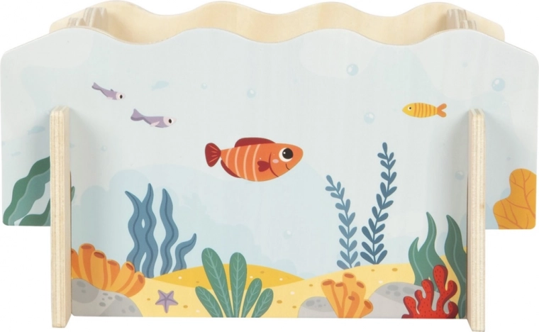 Ta kakovostna lesena magnetna igra z morskim motivom je namenjena za 1–2 igralca. Otroci z magnetnimi palicami lovijo ribice, morske konjičke ali morske zvezde, jih obrnejo z oznako točk navzgor in na koncu seštejejo osvojene točke. Preprosta pravila, kratke runde in privlačne barve naredijo igro idealno izbiro za predšolske otroke.