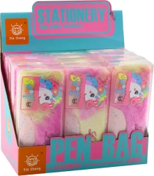 Ta čudovit penal je okrašen z roza enorogom in bleščečimi elementi, kar ga naredi popolnega za otroke, ki obožujejo pravljična bitja. Je mehak in prijeten na dotik zaradi plišastega materiala in vzdržljiv pri vsakodnevni uporabi.