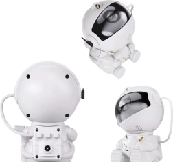 Oblika sedečega astronavta z magnetno pritrjeno, povsem vrtljivo glavo (360°) omogoča, da projekcijo usmerite natanko tja, kjer najbolj zažari. Projektor je odlična dekoracija za dnevno sobo in otroško sobo, z napajanjem prek USB pa ga zlahka priključite na napajalnik, powerbank ali računalnik.