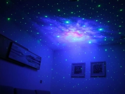 Barvite meglice in nežne zvezde osvetlijo strop in stene. Preprosto nastavite barvo, svetlost in hitrost, vse pa udobno upravljate z daljinskim upravljalnikom.