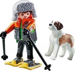 Odkrijte zasnežene planjave s smučarjem PLAYMOBIL in njegovim predanim bernardincem. Figurica je opremljena s krpljami in palicami, zato je pripravljena na vsak teren. Otroci bodo cenili možnost snemanja kape in krpelj ter preprosto spreminjanje videza junaka za nove igralne scenarije.