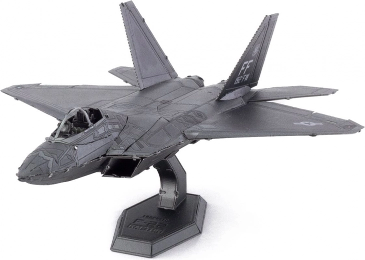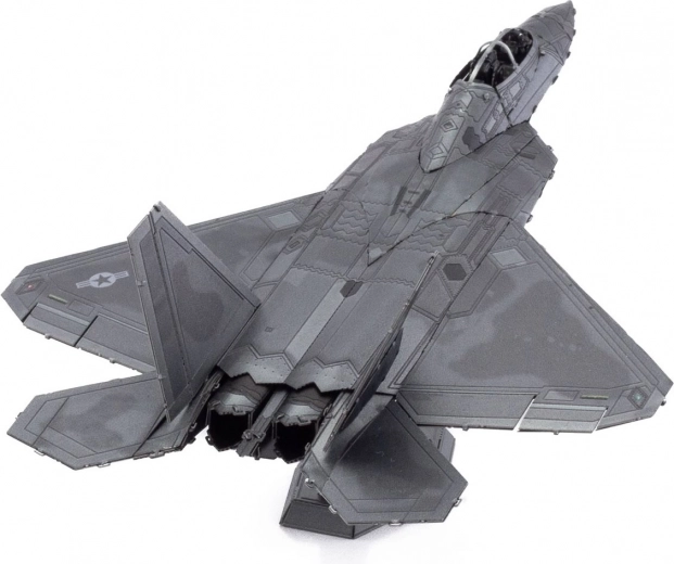Podrobna obdelava F-22 Raptor s poudarkom na natančnem graviranju in realističnih proporcih ustvari popolno kopijo tega ikoničnega lovca.