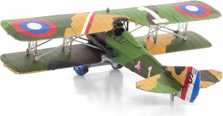 Ustvarite fascinanten kovinski 3D model SPAD S.XIII, slavnega francoskega enosedežnega dvokrilnika iz prve svetovne vojne, z modelarskim kompletom znamke Metal Earth. Sestavljanje modela zahteva natančnost in spretnost, rezultat pa je osupljiva dekoracija za vsakega ljubitelja letalstva.