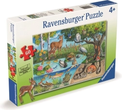S to sestavljanko Ravensburger bodo otroci uživali v obilici zabave, hkrati pa bodo urili svoje spretnosti. Ilustracija Ingrid Slyder prikazuje barvit svet gozdnega ribnika, kjer najdemo različne vrste živali – ptice, jelene, sove, rakune, veverice, ribe in želve. Pod površjem pa razkriva zanimiva življenja zajcev v rovih ter počivajočo lisico.