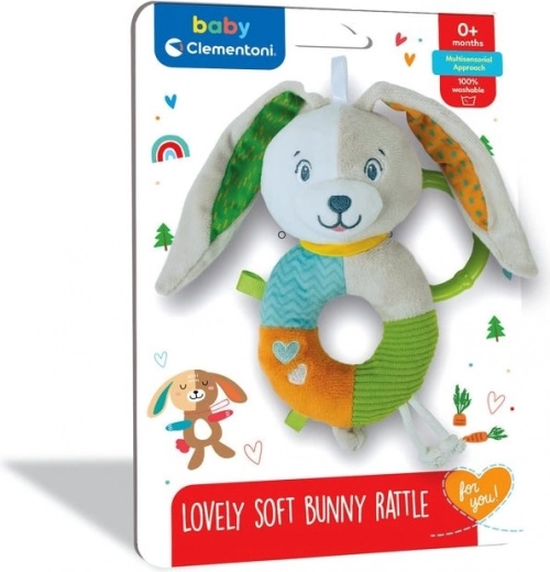 Ljubka plišasta ropotuljica v obliki zajčka znamke CLEMENTONI Baby bo razveselila vsakega dojenčka. Je mehka na dotik, lahko jo je prijeti in zahvaljujoč zvončku v notranjosti razvija slušno zaznavanje. Različni materiali in žive barve spodbujajo fino motoriko ter vizualno zaznavanje. Praktičen pritrditveni obroček omogoča, da igračo vzamete kamor koli s seboj.