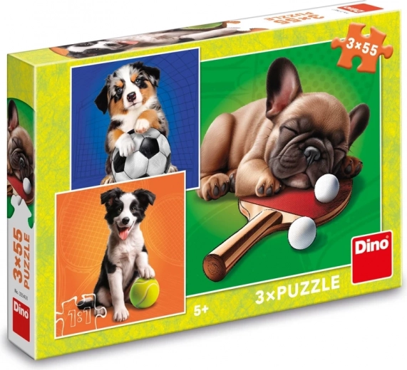 Ta komplet prinaša trojni odmerek zabave: tri samostojne sestavljanke z veselimi motivi pasjih športnikov. Zahvaljujoč trdnemu in varnemu kartonu so koščki prijetni na dotik in se dobro prilegajo, kar spodbuja potrpežljivost, logično razmišljanje in fino motoriko.