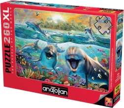 Podajte se na podvodno pustolovščino s tem čudovitim puzzlejem z motivom nasmejanih delfinov. Idealno za vse starostne skupine, prinaša veselje in sprostitev pri sestavljanju.
