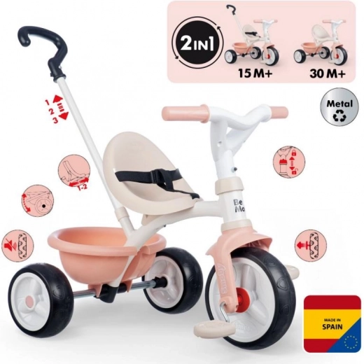 Rožnati otroški tricikel Be Move je idealno prevozno sredstvo za male gospodične, ki želijo uživati v zabavni vožnji. Ta tricikel je zasnovan z mislijo na varnost in udobje:
