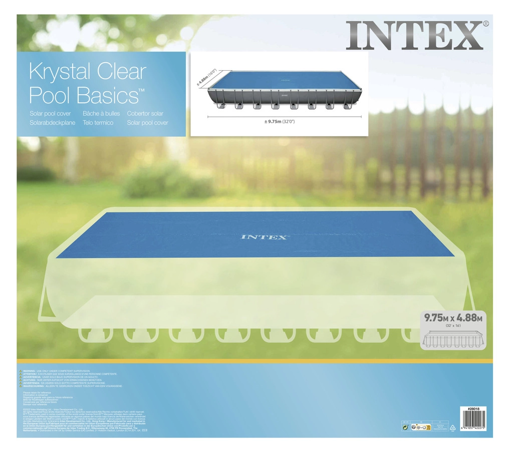 Sončna pokrivka za bazen Intex je idealna izbira za ohranjanje temperature vode v bazenu in zmanjšanje izhlapevanja. Ta pokrivka je namenjena bazenom velikosti 9,75 × 4,88 m, kar ustreza dimenzijam 960 × 466 cm.