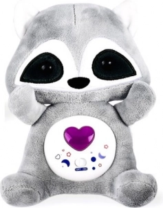 Rakun s svetlobnim in zvočnim učinkom s sprostitvenimi zvoki za pomiritev in uspavanje otrok. Nežna lučka in prijetni zvoki za otroško sobo.