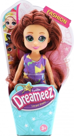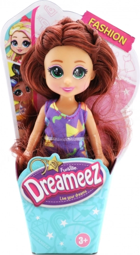 Prisrčna mini punčka DREAMEEZ velikosti približno 12 cm v čarobni embalaži v obliki korneta prinaša veliko modne zabave. Ima dolge, česljive lase, trendovska oblačila in je odlična za kreativno igro in zbiranje.