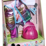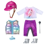 Oprema za jahalni dan za vašo lutko s stilnim kompletom BABY born! Ta komplet vključuje vse potrebno za varen in stilni jahalni dan: jahalna oblačila in potrebne dodatke.
