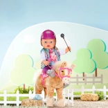 Poleg tega vključuje dodatke kot so bič in krtača za nego konja. Komplet je primeren tudi za lutke Starejše sestre BABY born in druge lutke v velikosti 43 cm.