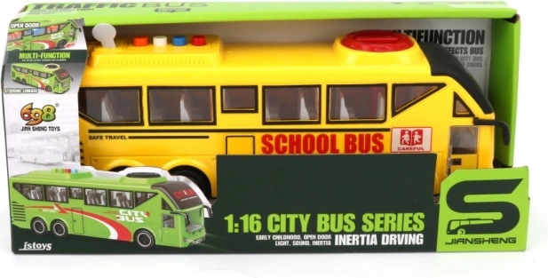 Rumen šolski avtobus v merilu 1:16 bo razveselil vse male voznike in ljubitelje prometa. Idealen je za igro v notranjih prostorih – na tleh ali na otroški mizici – ter spodbuja razvoj domišljije in motorike.