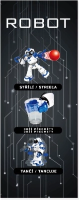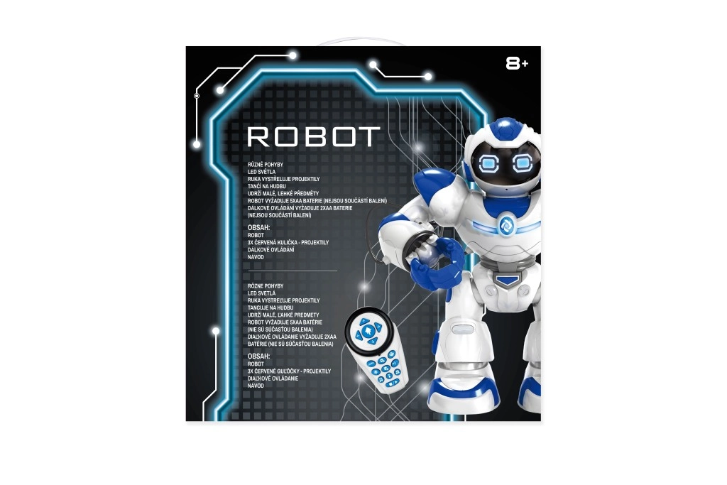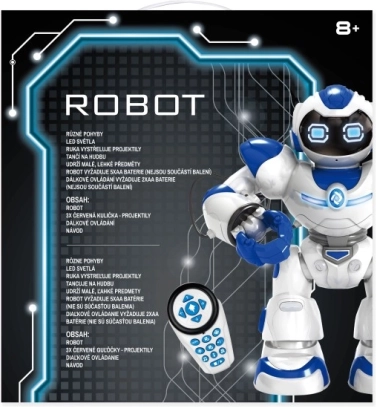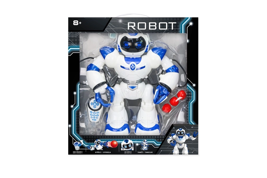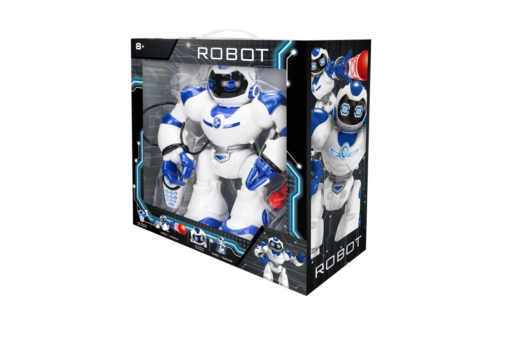 Robot se premika naprej, nazaj in se obrača v stran. Tri plesne melodije s svetlobnimi učinki poživijo vsako zabavo.