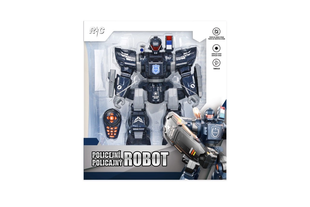 Interaktivni policijski robot 38 cm z daljinskim upravljanjem, lučmi, zvoki, plesom in streljanjem izstrelkov. Odlična akcijska zabava in razvoj koordinacije.
