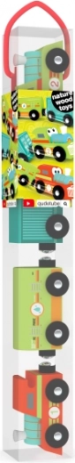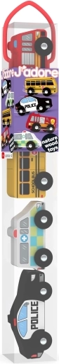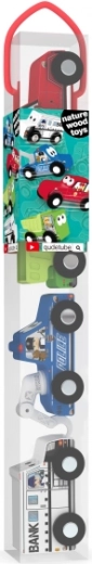 Ta kakovosten set združuje varen naravni material in živahne barve, ki otroke spodbujajo k raziskovanju. Avtomobilčke je zaradi prijetne površine enostavno prijeti, zato so idealni za prve igre poklicev, mesta ali reševalcev. Praktična tuba olajša shranjevanje in prenašanje na poti.