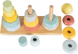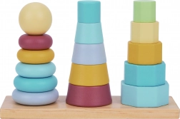 Trije stolpi znamke Tooky Toy prinašajo otrokom zabavo in učenje v enem. Pastelne oblike se zlahka primejo, zlagajo na leseno osnovo in omogočajo otrokom raziskovanje barv, oblik in velikosti. Idealno kot prva izobraževalna lesena igrača za otroško sobo.