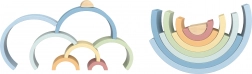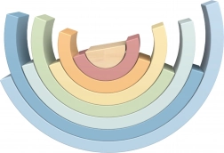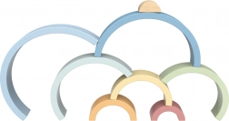 Komplet vsebuje 8 polkrožnih kosov različnih velikosti in nežnih barv, ki jih lahko zložite v mavrico, mostove, tunele ali domiselne stvaritve.