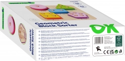 Leseni geometrijski sorter TOOKY TOY je idealen izobraževalni pripomoček za male raziskovalce. Pet zatičev in pisane oblike (krogi, trikotniki, kvadrati, pravokotniki in petkotniki) učijo otroke razlikovati oblike, barve in količine. Vsak element mora pasti na pravo izboklino, s čimer se na zabaven način krepijo logika, potrpežljivost in fina motorika.