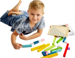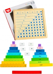 Igračo bodo cenili začetniki, ki že poznajo številke in želijo vaditi računanje, seštevanje in odštevanje. Varno, gladko obdelan les in netoksične barve zagotavljajo varno igro. Po igri je mogoče vse delce pospraviti nazaj v tablo, tako da je vse vedno na svojem mestu.