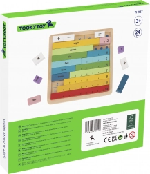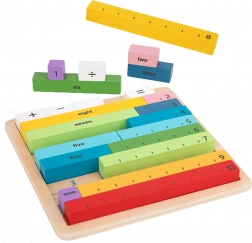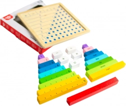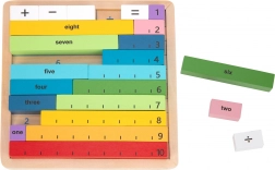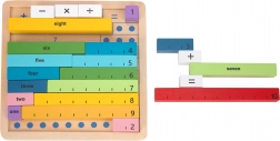 Ta izobraževalni set združuje barvne lesene delce s številkami in znamenji s praktično leseno ploščo. Otroci hitro razumejo odnose med številkami in preproste aritmetične operacije zlahka osvojijo z zlaganjem primerov in vizualno demonstracijo.