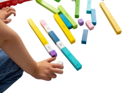Otroci manipulirajo z delci, razvrščajo barve in ustvarjajo enačbe – na zabaven način razvijajo fino motoriko in logično razmišljanje.