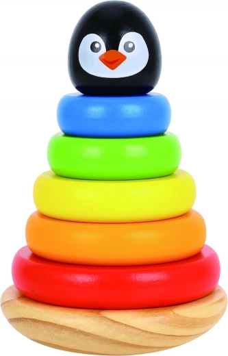 Ta leseni sestavljivi stolp z veselimi barvami in motivom pingvina je idealen za mlajše otroke. V paketu najdete stabilno podlago s količkom in več barvitih lesenih obročkov, iz katerih si otroci zgradijo svoj stolp. Igra razvija čute, podpira zbranost in prinaša veselje ob vsakem uspešnem zlaganju.