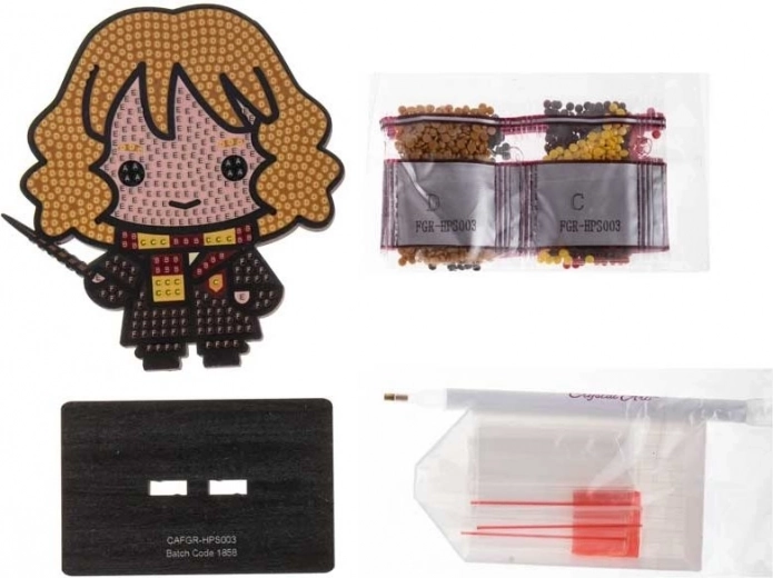 Diamantno slikanje je odličen način, da umirite misli in hkrati ustvarite dekoracijo z najljubšim likom iz čarobnega sveta. S pomočjo aplikacijskega peresa postopoma nanašate drobne kamenčke na predtiskana označena mesta in opazujete, kako motiv Hermione Granger oživi v iskrivih barvah.