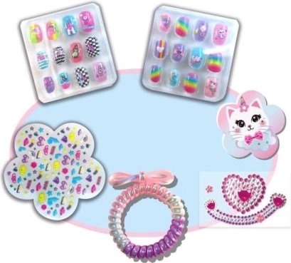 Ta ustvarjalni komplet je odlična izbira za male dame, ki se rade igrajo manikerko. S samolepilnimi nohti in okrasnimi kamenčki lahko v hipu pričarate izviren videz in uživate v zabavnem okraševanju.