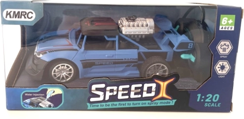 Ta modri RC avto prinaša zabavo na novo raven zahvaljujoč dimnemu učinku, ki nastane po dodajanju čiste vode. Vgrajeni svetlobni učinki še okrepijo vtis vožnje in naredijo model odlično izbiro za igro doma in na prostem. Zaradi enostavnega upravljanja je primeren za mlajše voznike, ki želijo doživeti pristno RC akcijo.