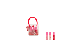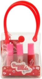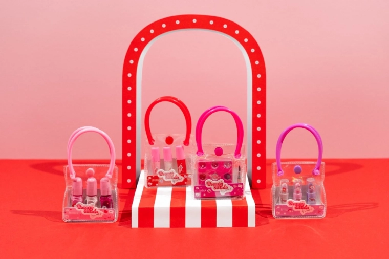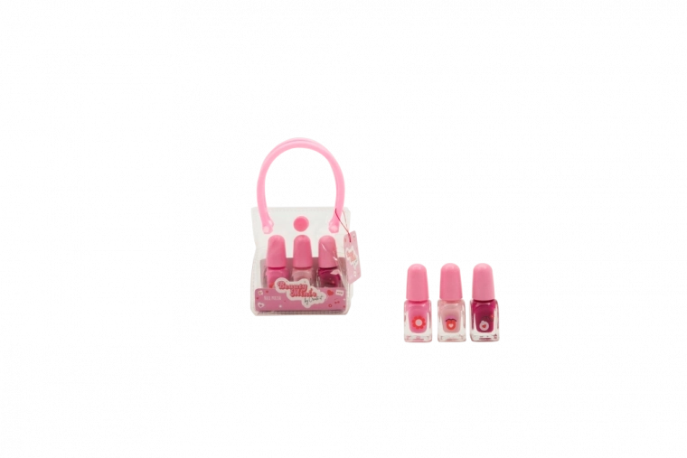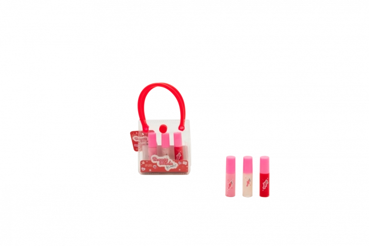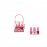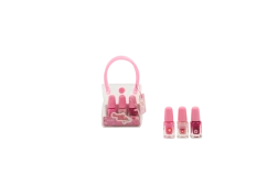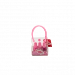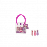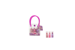 Prisrčna otroška mini torbica, polna ličil za male modne navdušenke. Izberite med 4 različnimi seti glede na vsebino: 3× lak za nohte, 3× balzam za ustnice, 3× glos za ustnice ali 3× šminka. Kompaktna prozorna torbica z ročajem je idealna za na pot, kot darilo in za igro kozmetičnega salona.
