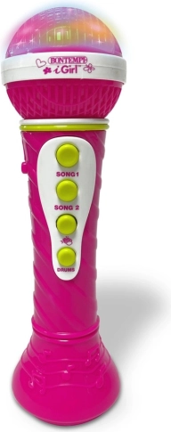 Karaoke mikrofon s svetlobnimi učinki, 16 demo skladb, aplavz in skandiranje, 4 bobnarski ritmi. Baterije niso priložene.