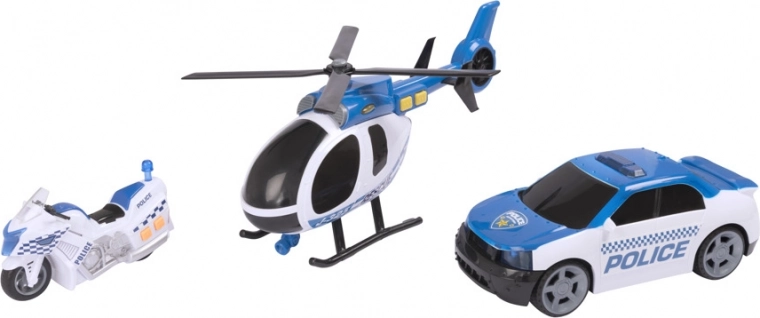Vključuje transportno vozilo, helikopter in policijski avto za realistično igro.