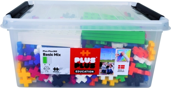 Praktičen konstrukcijski set za male graditelje: škatla vsebuje 400 velikih elementov PLUS-PLUS v osnovnih barvah in 10 trdnih podlag za enostavno gradnjo. Vključena je brošura z nalogami, deli so brez ftalatov, iz reciklirane plastike, izdelani na Danskem in preprosti za vzdrževanje. Primerno od 1. leta, idealno tudi za kolektive.