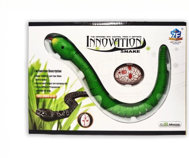 Realistična RC klopotača prinaša otrokom in odraslim obilo zabave in smeha. Premika se naprej in vstran, ima premikajoč se jezik in rep, in zahvaljujoč infrardečemu upravljanju z dosegom do 8 m se odziva na vsak ukaz. Priloženi so polnilna baterija 3,7 V 500 mAh in upravljalnik v obliki kačjega jajca. Čas igranja do 30 minut, štiri barvne različice, primerno od 6 let naprej.